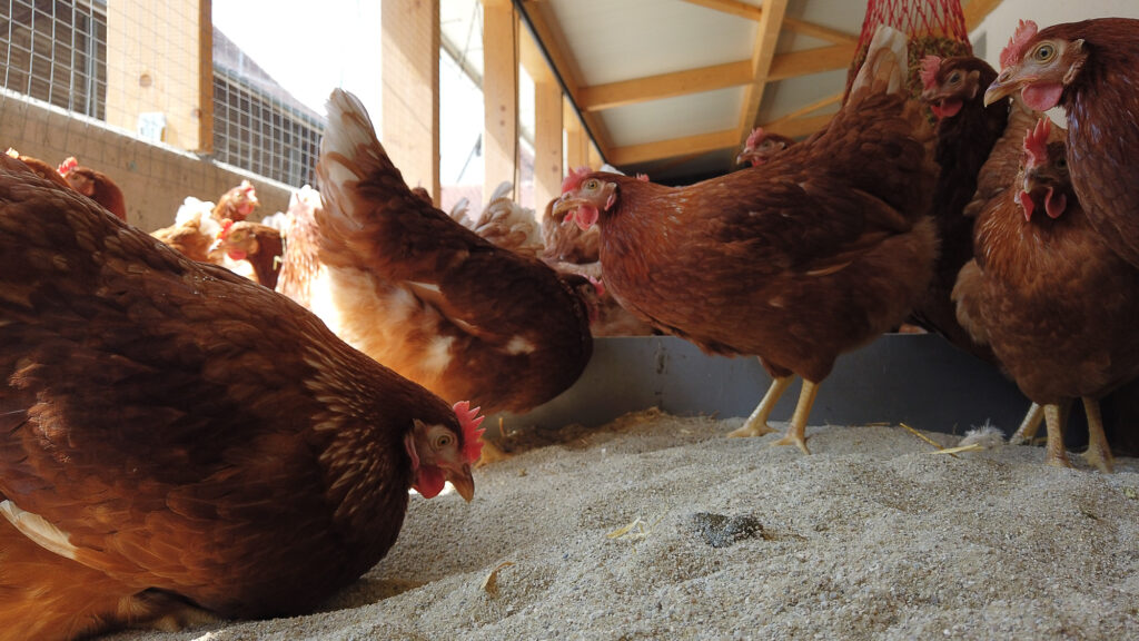Unsere Hühner haben die Möglichkeit zum Scharren, Picken, Sandbaden, Ruhen und können sich den ganzen Tag frei bewegen.