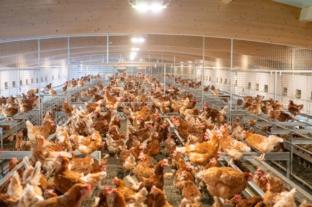 Im Jahr 2020 haben wir einen modernen „Mehrklimastall“ erstellt, der den Tieren zusätzlich einen Kaltscharraum bietet. Durchdachte Planung in Klimatechnik und energiesparende, tierfreundlichen Hochfrequenz-LED-Beleuchtung schaffen optimales Klima und artgerechte Tierhaltung.